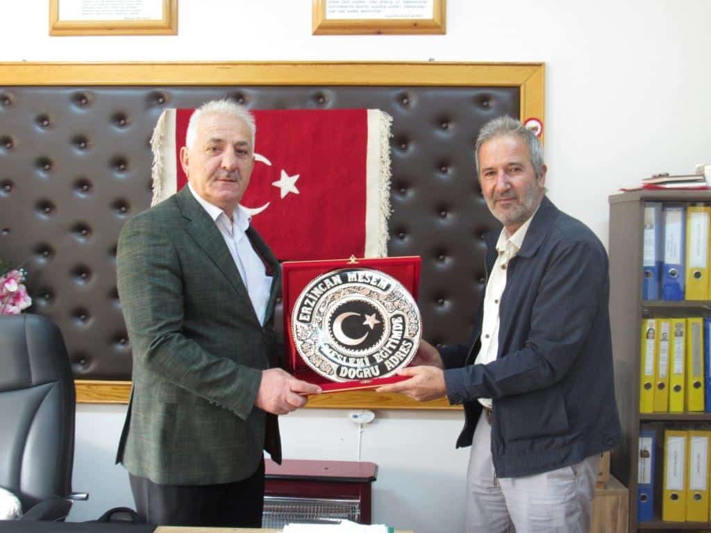 Erzincan Esnaf Odaları Başkanı Sayın Bedir LİMON Ahilik Haftası etkinlikleri kapsamında Erzincan Mesleki Eğitim Merkezini ziyaret etti Merkezimiz müdürü Bahadır SAZLI ile Ahilik haftası, eğitim süreçleri ; oadaya bağlı işletmeler konularında fikir alışverişinde bulunuldu.Başkanımıza ziyeretleri ve hediyeleri için teşekkür ediyoruz.